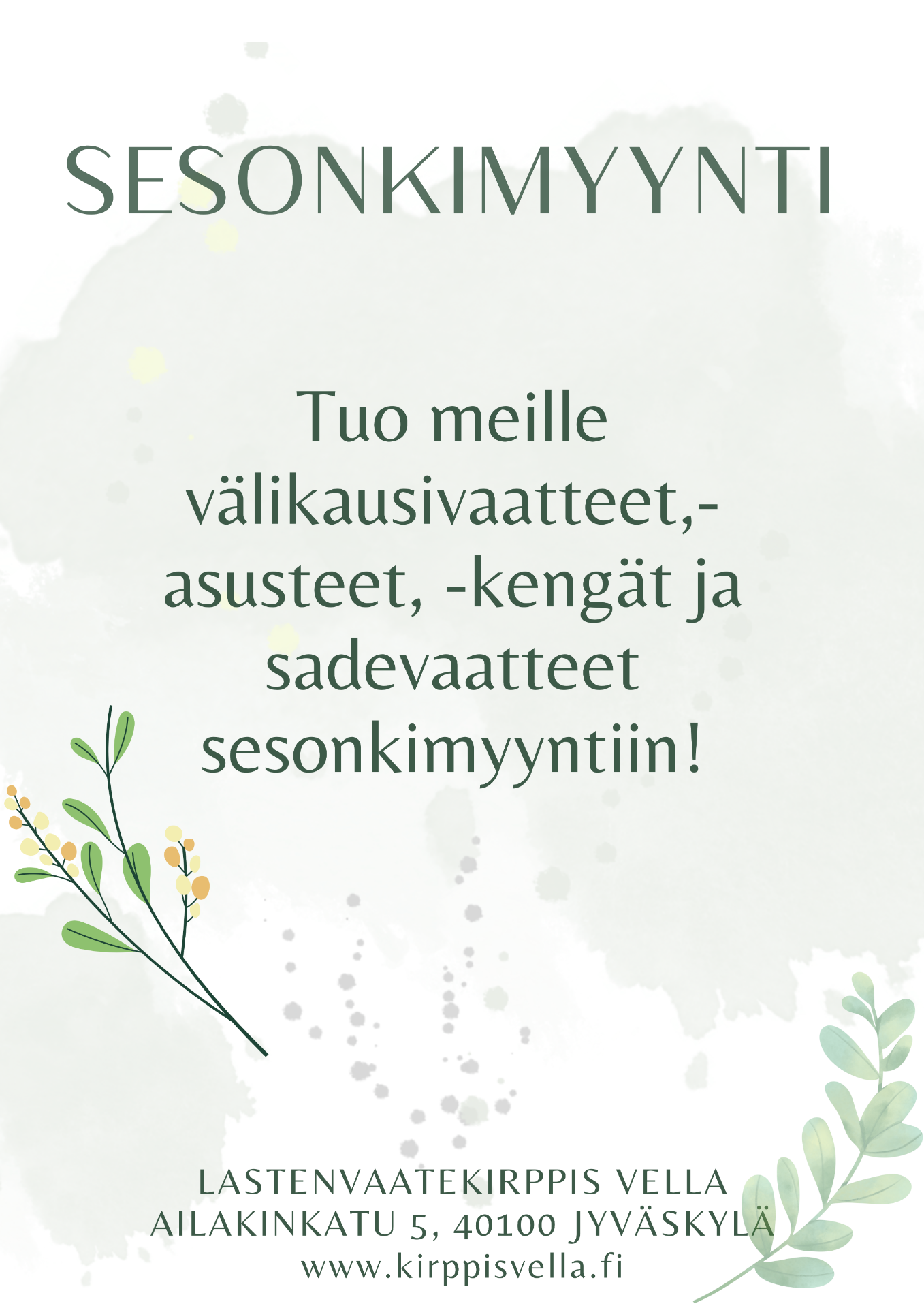 ✨Voit tuoda myyntiin sesongin mukaisia tuotteita, kuten välikausivaatteita, kuorivaatteita, sadevaatteita, kumisaappaita, kenkiä ja asusteita.
