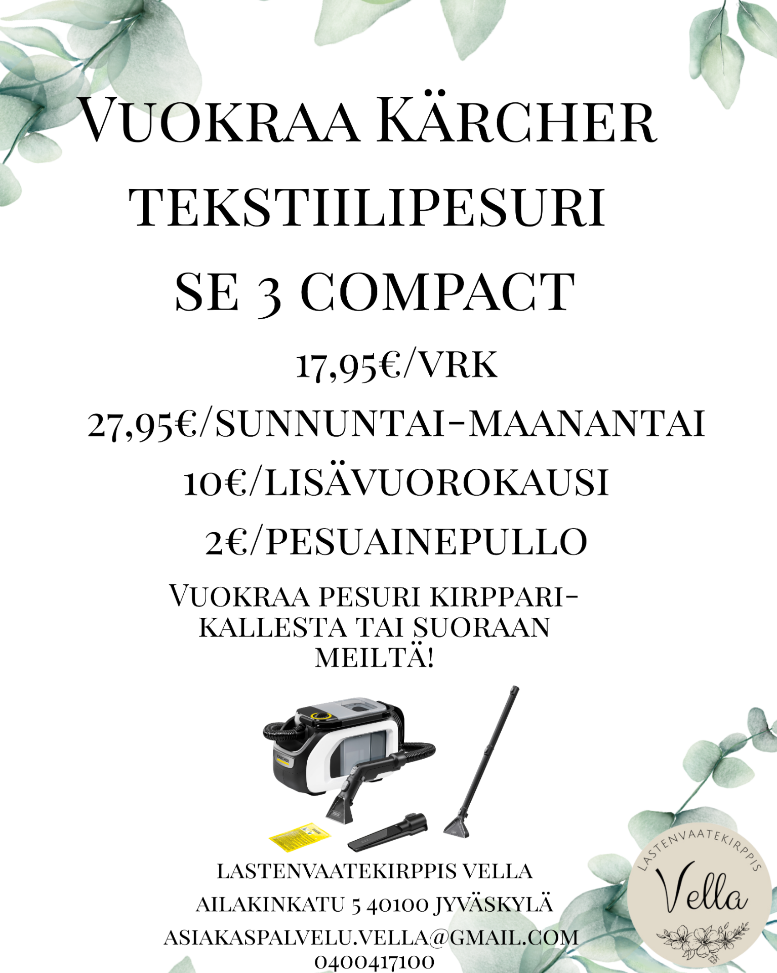- 0400417100 / asiakaspalvelu.vella@gmail.com